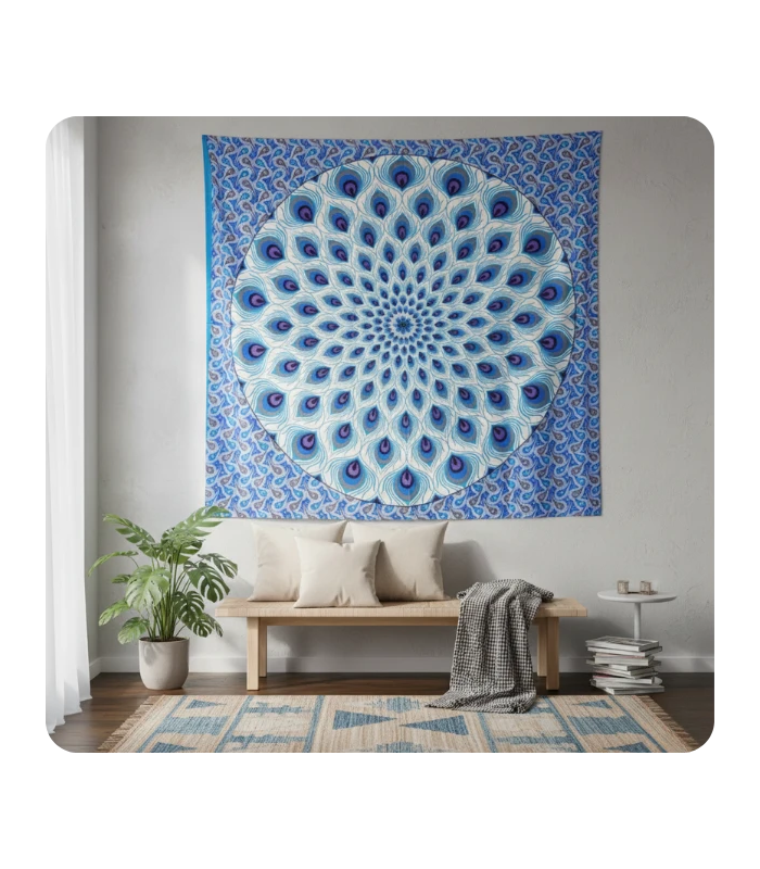 *Blue Peacock Cotton Tapestry | Handmade 90"x80" | GenTree Home